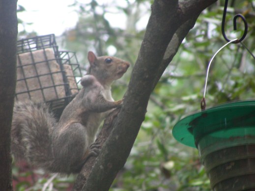 Tina loves squirrels. I like squirrels. But like most Atlantans that I know who feed birds, squirrels are regarded as a nuisance. I happened to take a look outside this afternoon and see the squirrel in the photo above. (Note, some mobile devices aren’t displaying the photos.) Looks like the poor guy has a big tumor on his shoulder. I don’t know what it meant, but it struck me as something I needed to take note of.