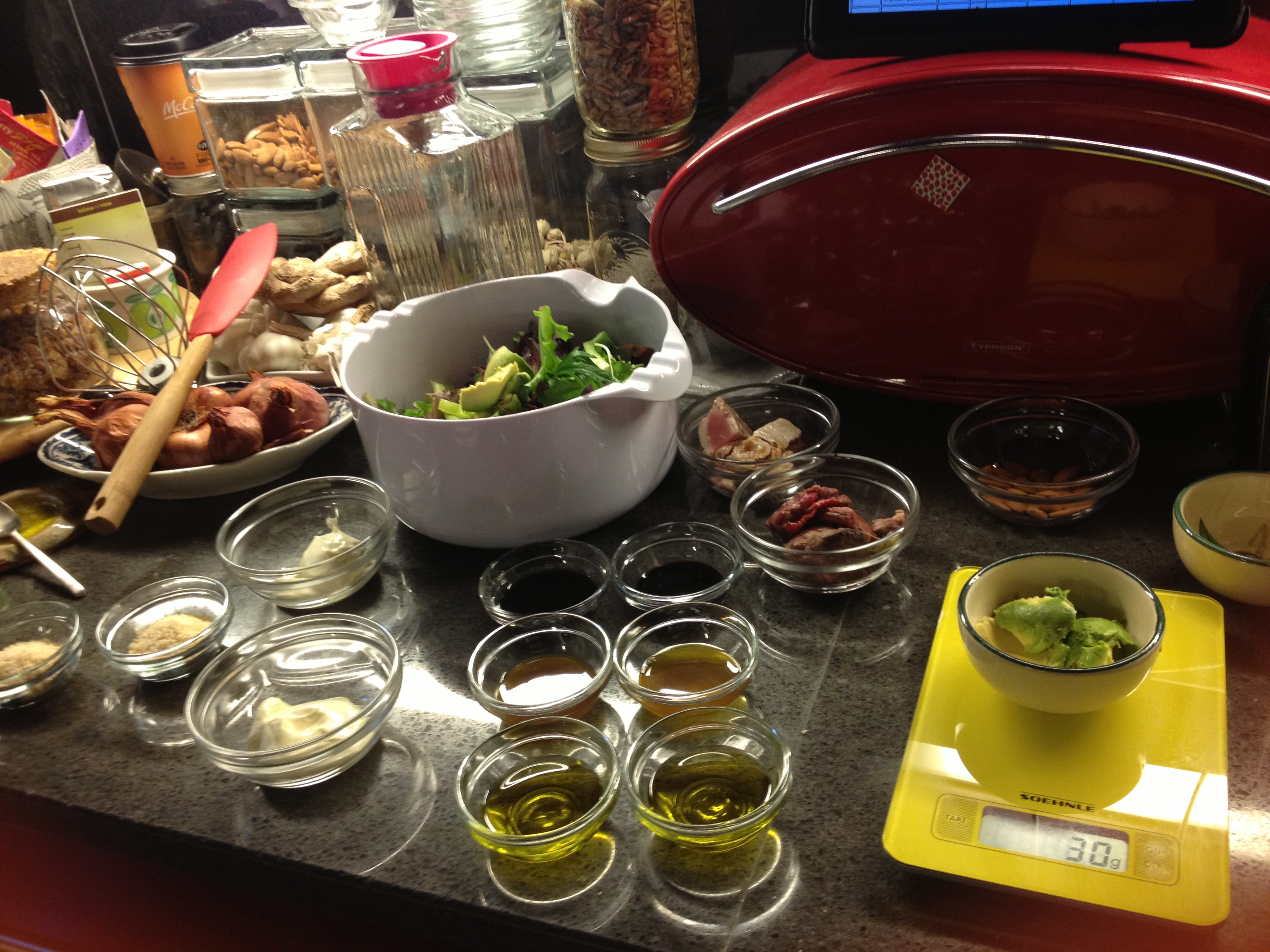 MeasuringOn a high-level, the dietician has created customized meals for us to prepare. Every ingredient has to be weighed. Tina spends a lot of time preparing and cooking.